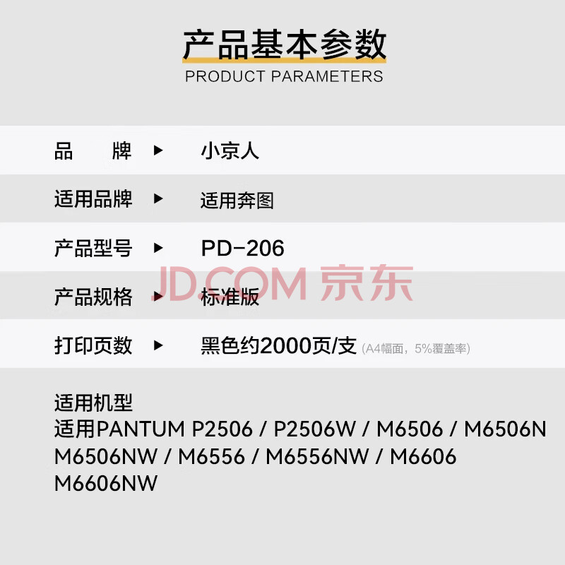 商品相册:小京人PD206硒鼓适用奔图M6506硒鼓P2506粉盒 M6506n/nw M6556 M6556n/nw M6606n P2506 P2510打印机碳粉盒墨粉盒第