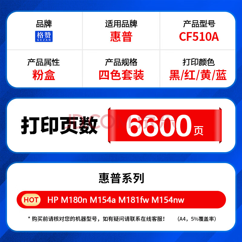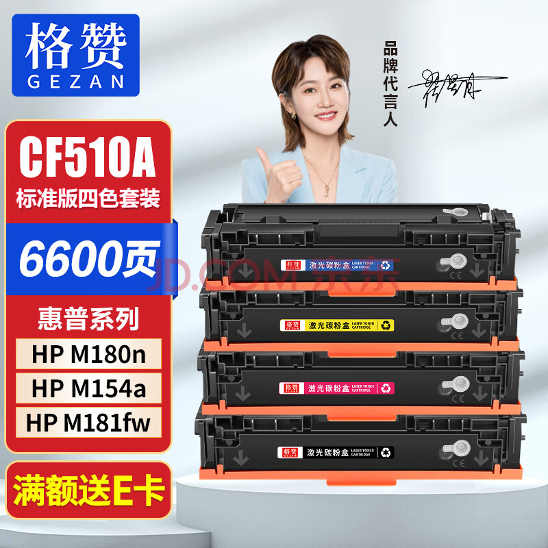 商品相册:格赞CF510A硒鼓适用惠普M180n硒鼓M154a墨盒hp 204A M181fw墨粉color laserjet pro M154nw打印机粉盒四色套装第