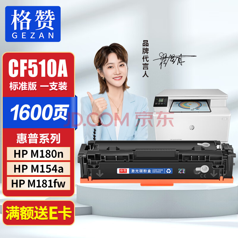 商品相册:格赞CF510A硒鼓适用惠普M180n硒鼓M154a墨盒hp 204A M181fw墨粉color laserjet pro M154nw打印机碳粉盒粉盒蓝色第