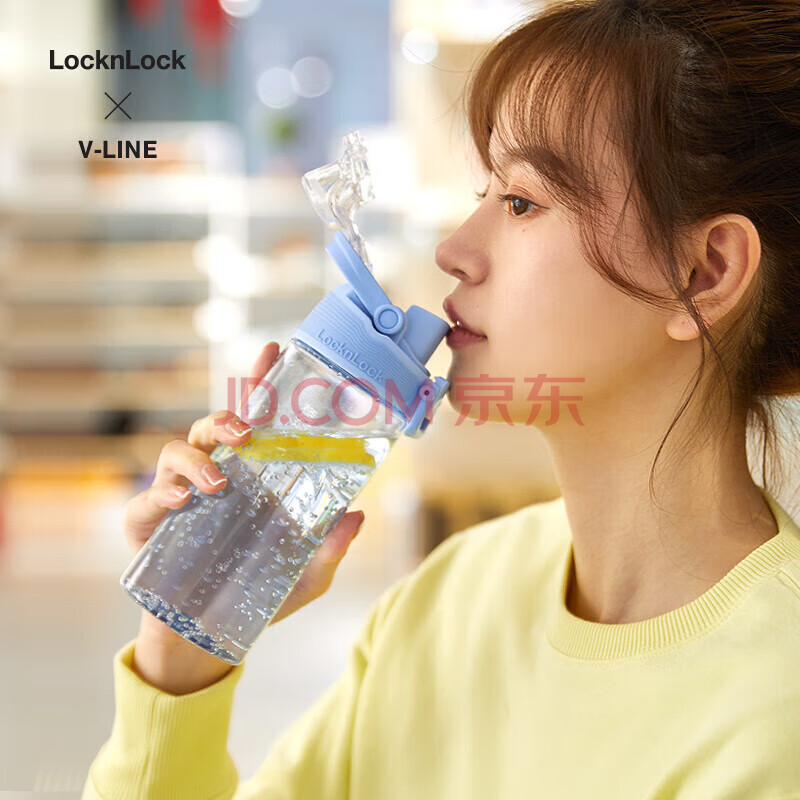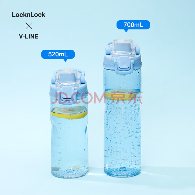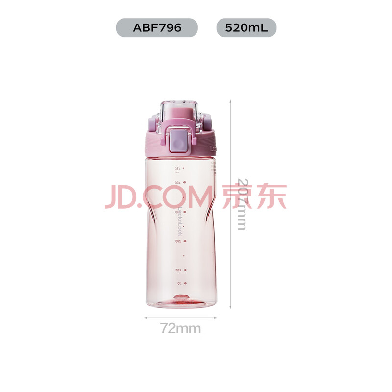 商品相册:乐扣乐扣(LOCK&LOCK)人鱼线塑料运动水杯夏天便携水壶带刻度提手男女水杯子520ML粉色第