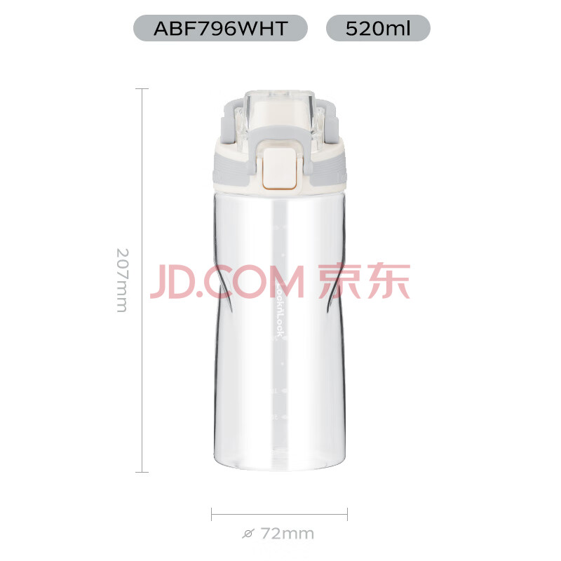 商品相册:乐扣乐扣(LOCK&LOCK)人鱼线塑料运动水杯夏天便携水壶带刻度提手男女水杯子520ML白色第1张/共9