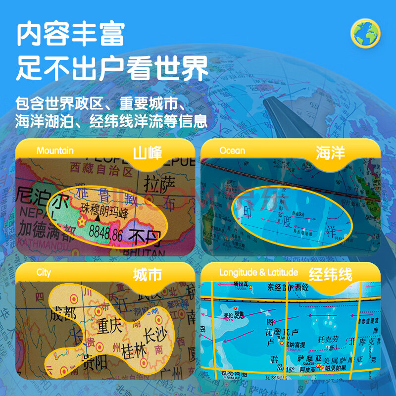商品相册:得力32cm学生用办公地球仪10岁男孩7-14岁女孩玩具 教学研究摆件儿童礼物教师礼品 教学用品3035S第