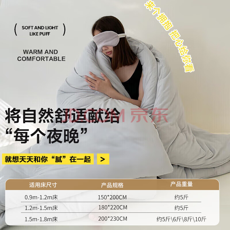商品相册:南极人被子春秋四季被 双人被芯被褥棉被空调被6斤 200*230cm灰色第
