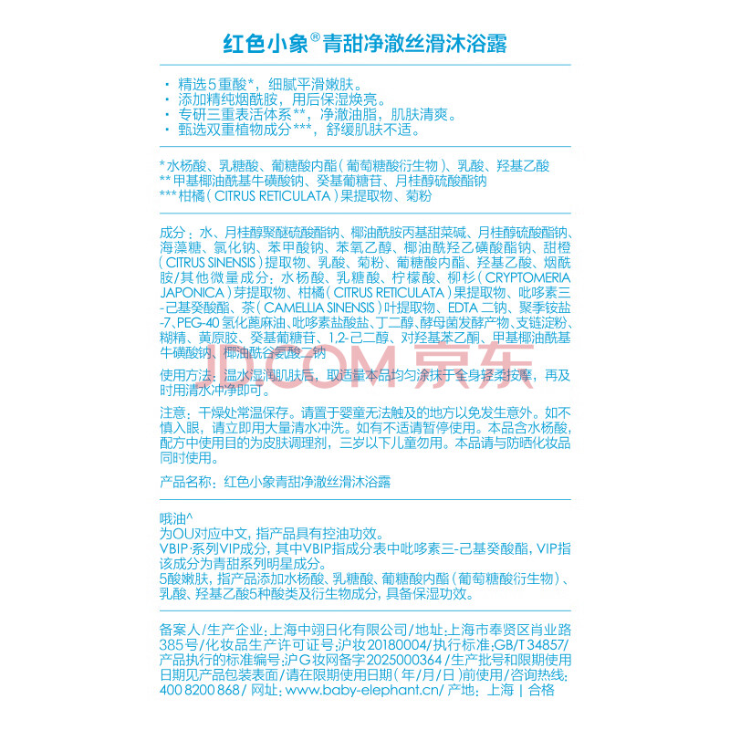 商品相册:红色小象青甜净澈丝滑沐浴露400g学生专用温和清洁持久留香第