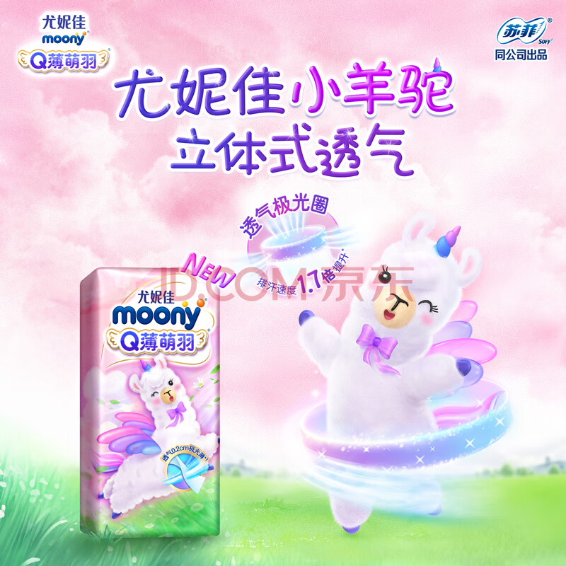 商品相册:MOONY尤妮佳Q薄萌羽小羊驼纸尿裤M2片(6-11kg)尿不湿【试用装】第1张/共5