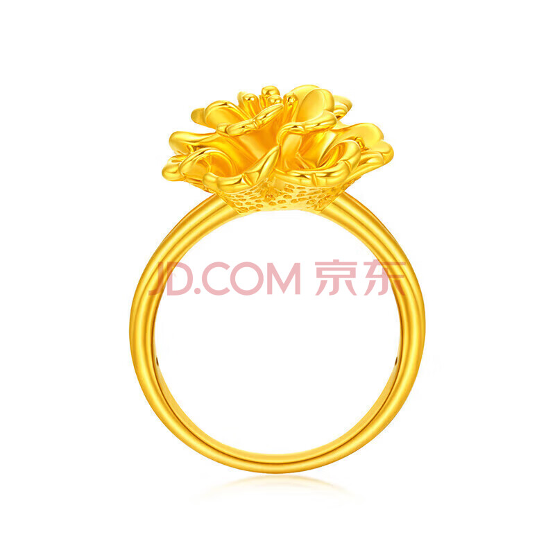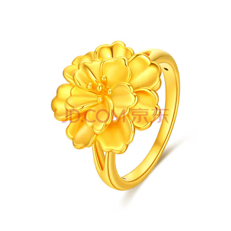商品相册:梦金园黄金戒指牡丹花硬金戒指显大指环闭口女戒生日礼物第