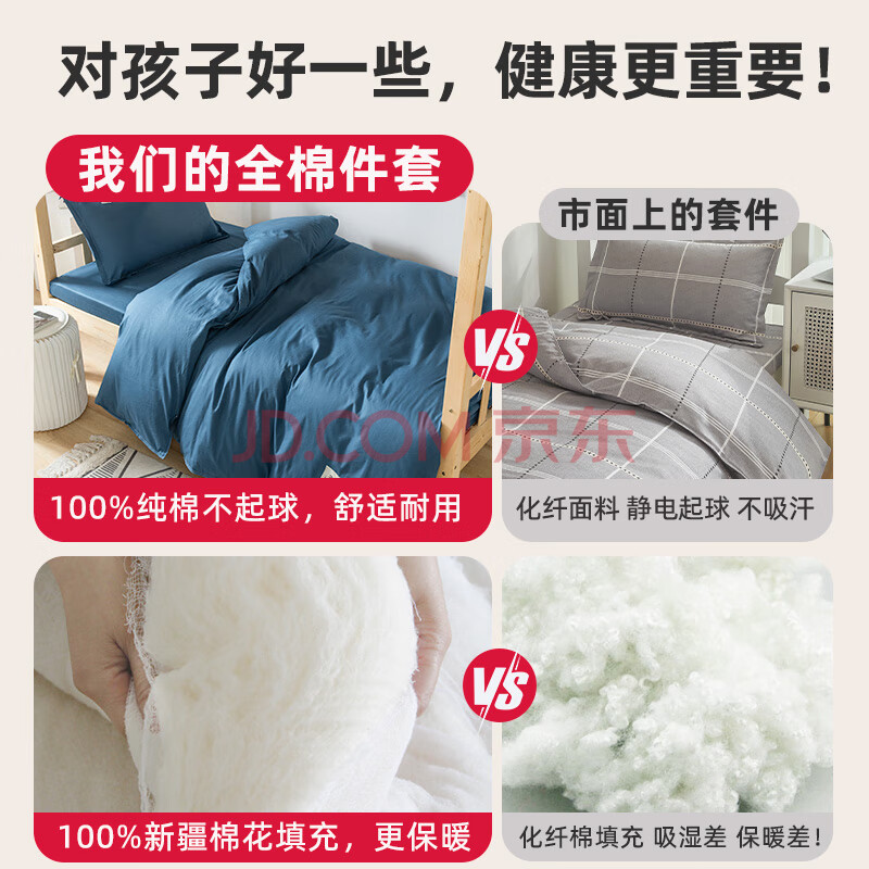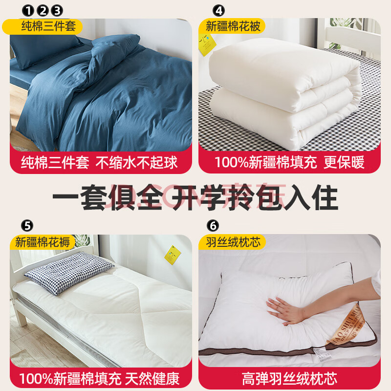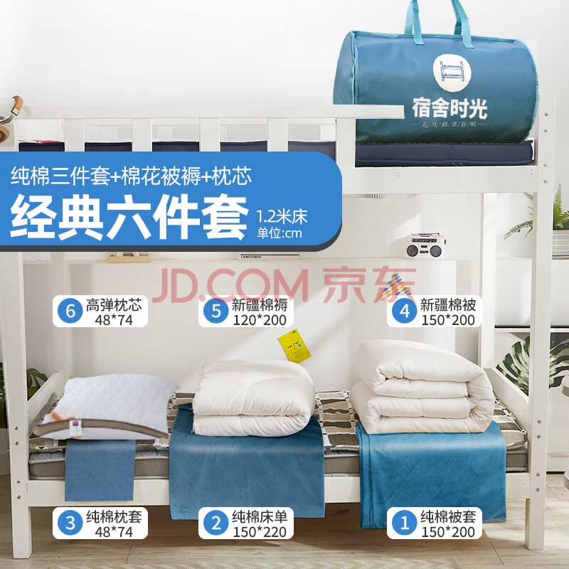 商品相册:梦诗娜全棉宿舍六件套床上用品被褥套装单人被子褥子全套1.2米月光蓝第1张/共6