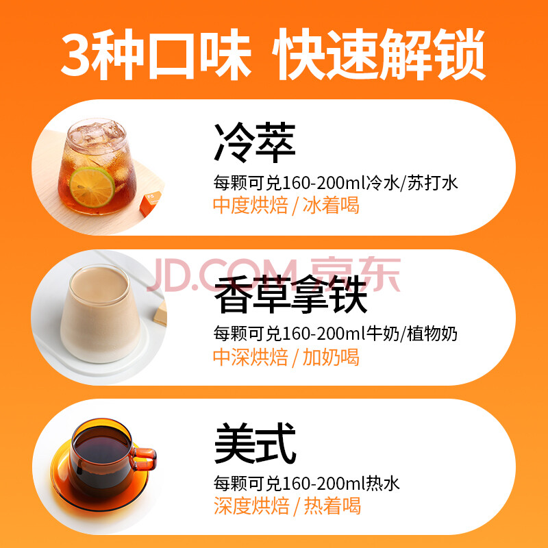 商品相册:F5F5 速溶冷萃黑咖啡 美式香草拿铁冷萃风味混合尝鲜装 4颗*2g第
