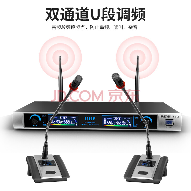 商品相册:先科(SAST)OK-12 无线麦克风话筒鹅颈会议U段变频麦克风k歌主持舞台演讲鹅颈式一拖二话筒第