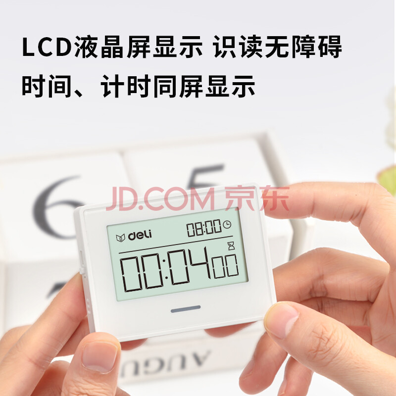 商品相册:得力多功能电子计时器时钟 正倒计时 学生练习考试计时器时间管理迷你款 白色8850第