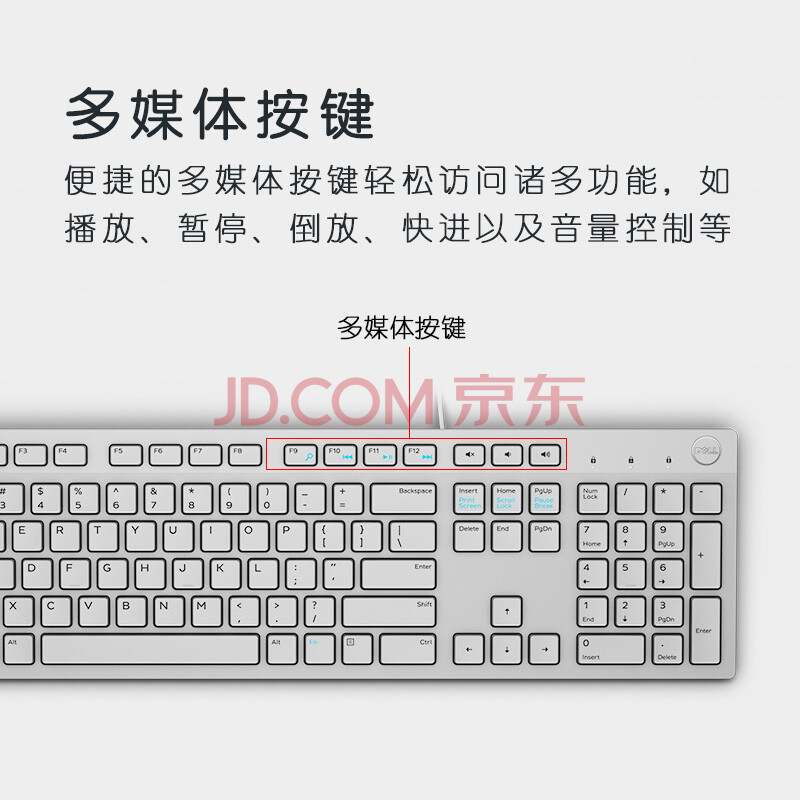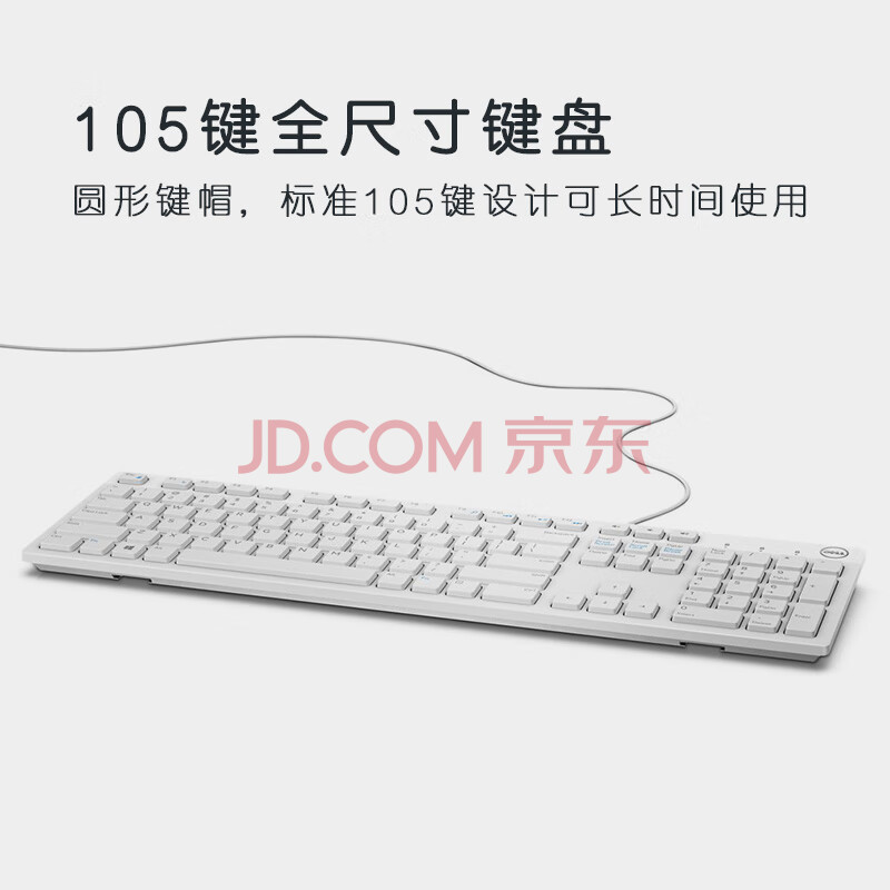 商品相册:戴尔(DELL)KB216有线键盘办公键盘全尺寸键盘USB接口白色第