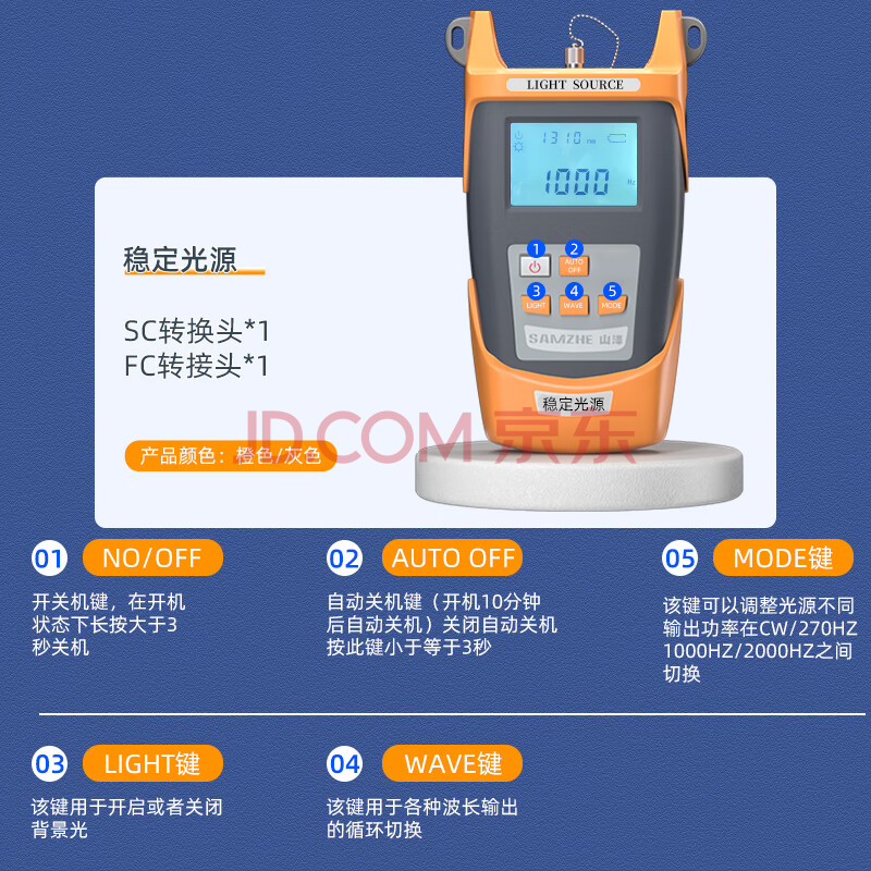 商品相册:山泽光纤稳定光源测试仪 光功率计发射光源 光纤检测仪 SC/FC/ST通用接口 1310/1550nm双波长 SZ-GG03第