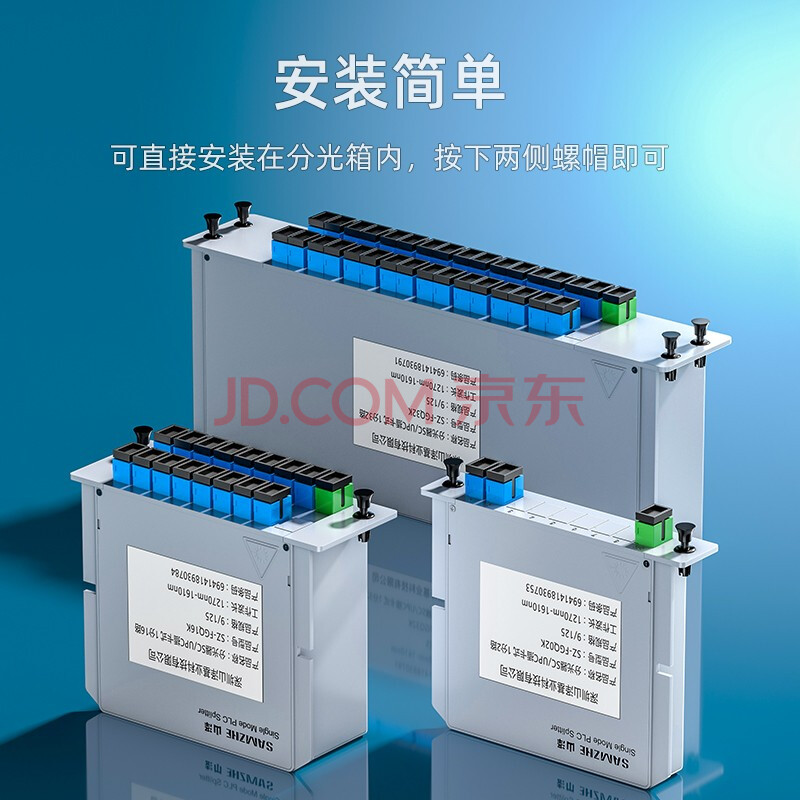 商品相册:山泽(SAMZHE)电信级光纤分光器 1分2 单模方头SC/UPC插卡式 一分二路分路器 SZ-FGQ02K第