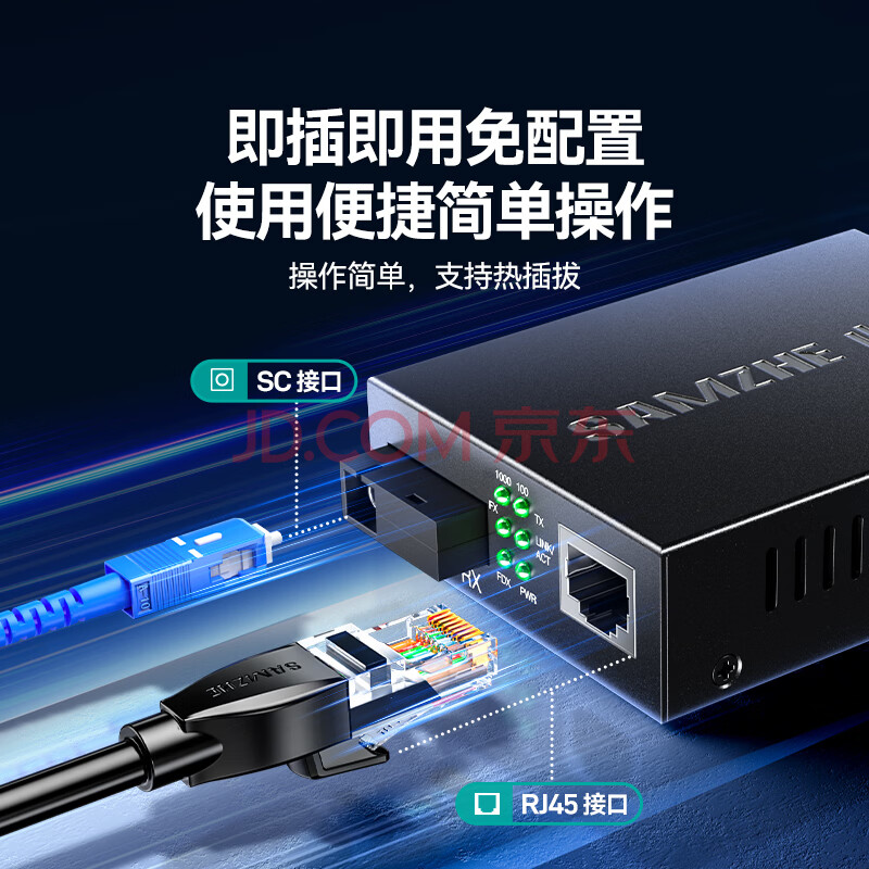 商品相册:山泽【军标认证+工程级】光纤收发器 千兆单模单纤光电转换器 网络监控SC接口3KM 一对装 SZ-FCQ03AB第