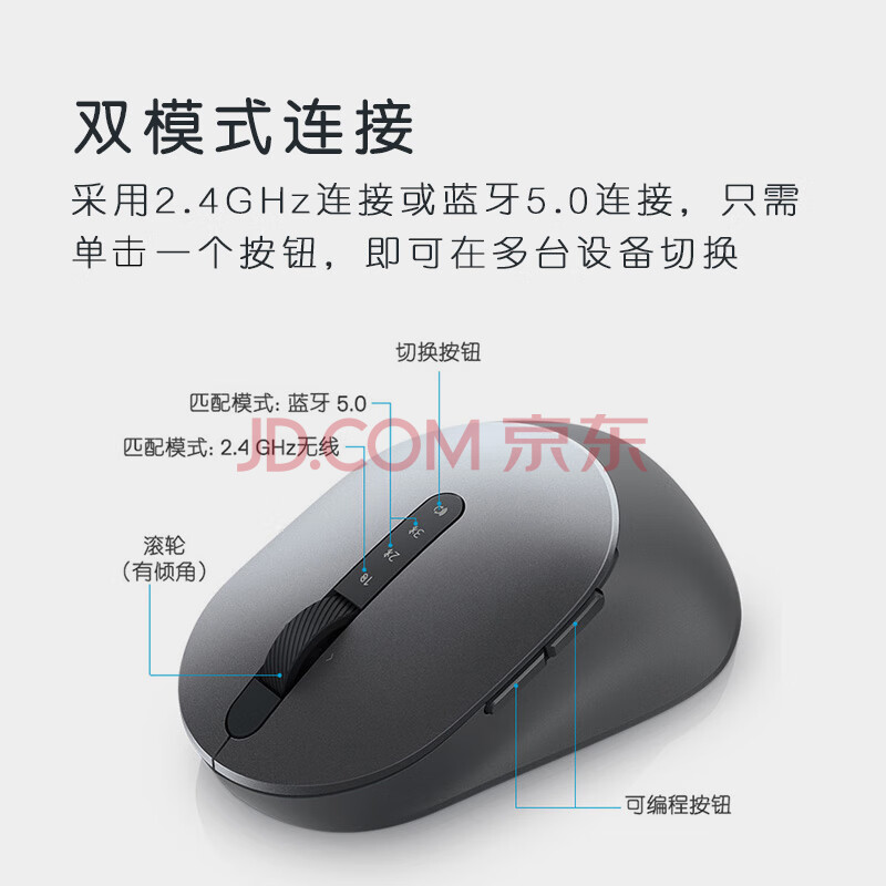 商品相册:戴尔(DELL)MS5320W无线鼠标办公家用鼠标蓝牙鼠标双蓝牙鼠标无线人体工学右手专用 泰坦灰第