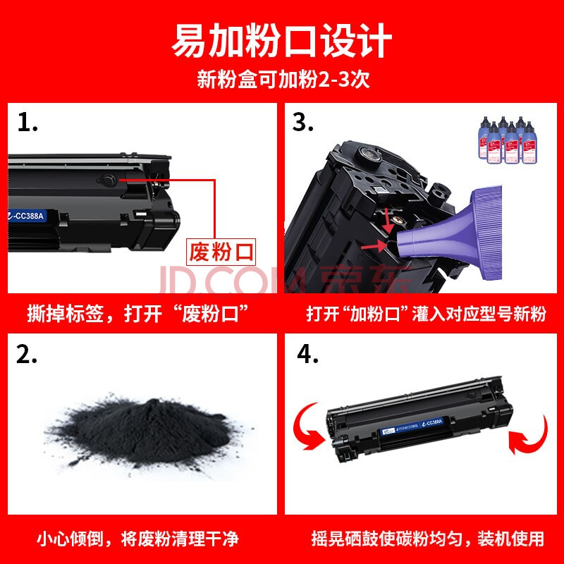 商品相册:E代CC388A硒鼓易加粉 适用hp惠普打印机88A/388a硒鼓m1136墨盒p1106 p1108 m126a m126nw m128fn P1008 P1007第