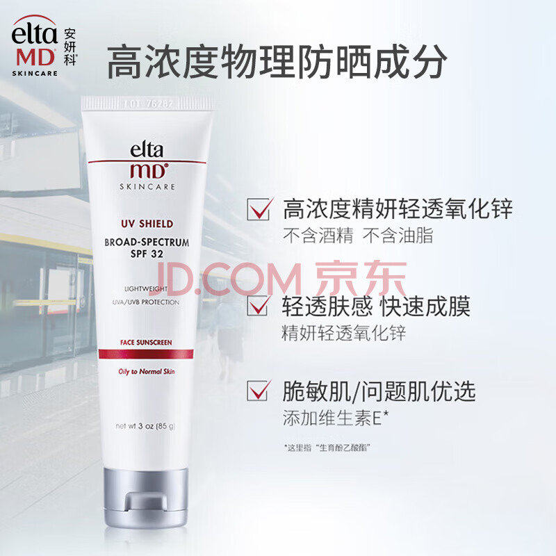 商品相册:Elta MD安妍科小白盾防晒霜SPF32 85g男女士户外通勤高倍防晒乳新年礼物第