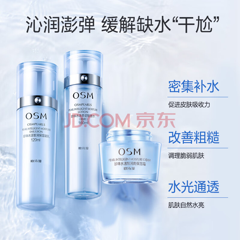 商品相册:欧诗漫(OSM)水活智润套装(爽肤水+乳液+面霜)补水保湿护肤品 生日礼物第