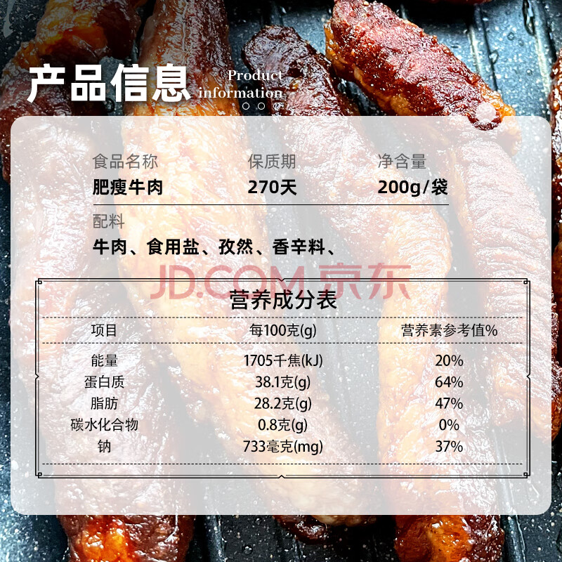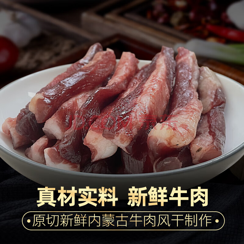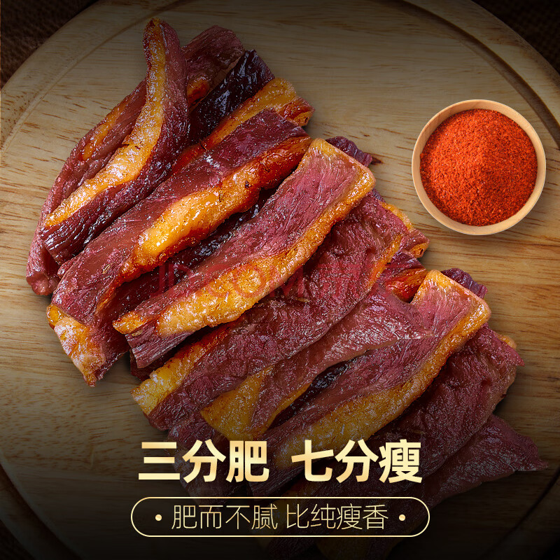 商品相册:草原村 肥瘦相间风干牛肉干加热食用休闲解馋零食内蒙古特产肉脯200g第