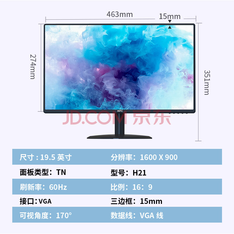 商品相册:HPC19.5英寸家用办公电脑显示器 16:9 VGA接口 可壁挂 广视角 台式电脑监控显示屏 H21第