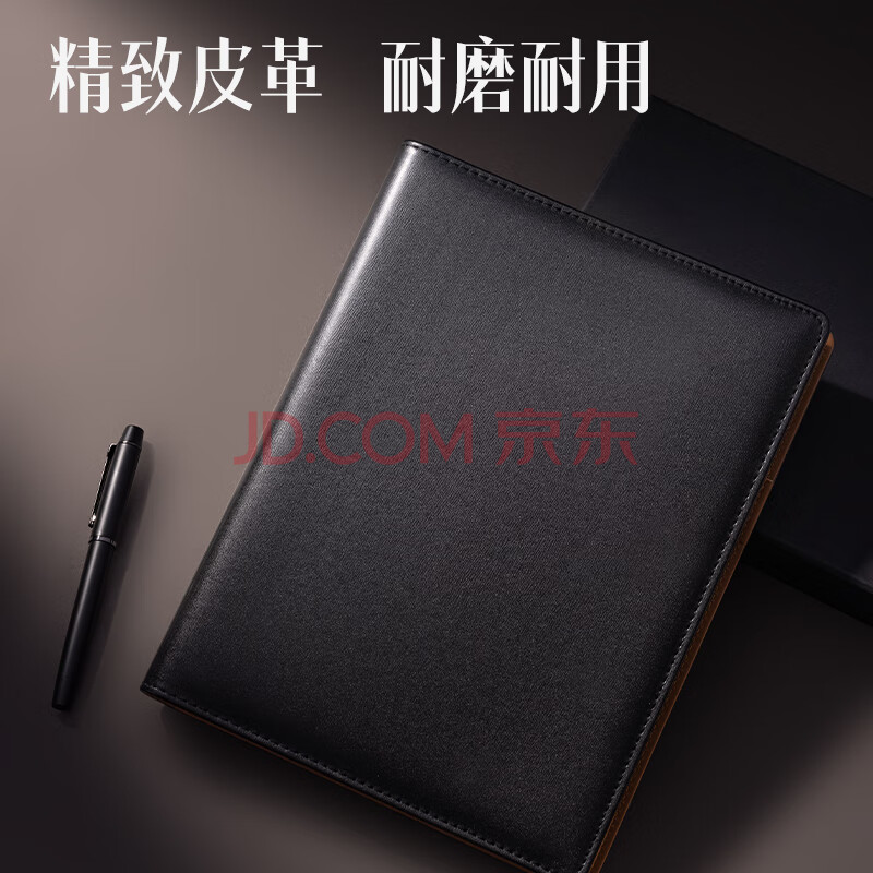 商品相册:得力(deli)16K100张大号精装活页笔记本子 商务记事本日记本皮面本办公用品黑33050第