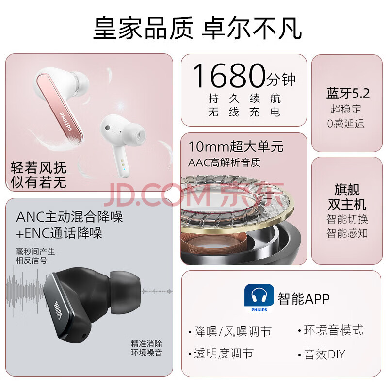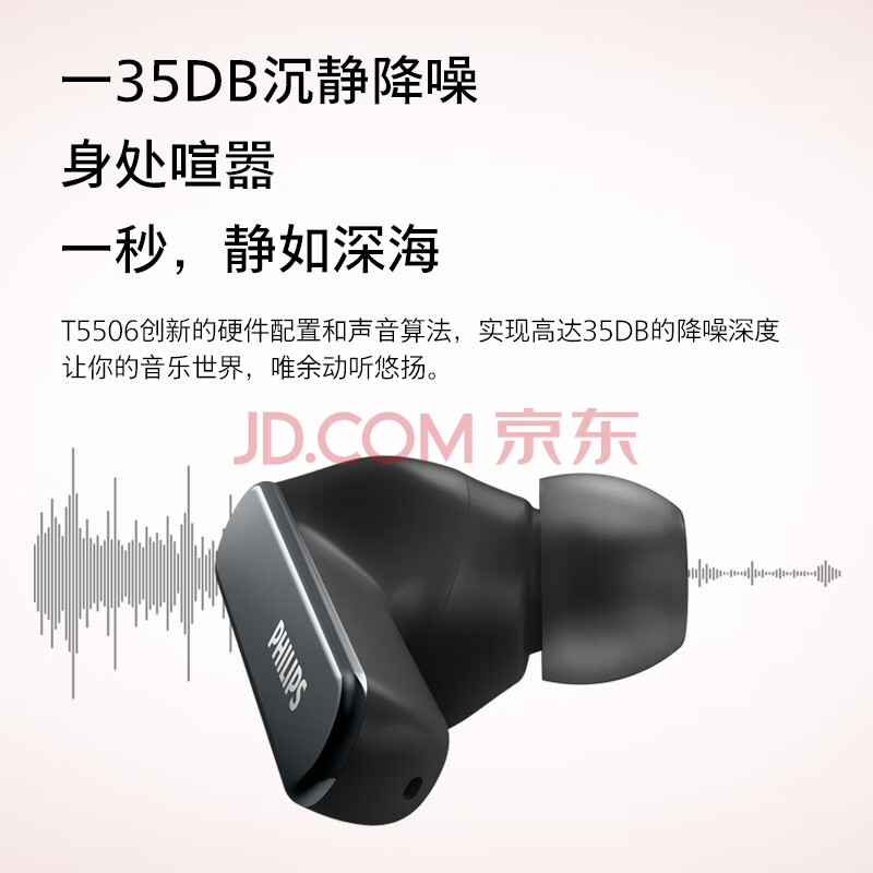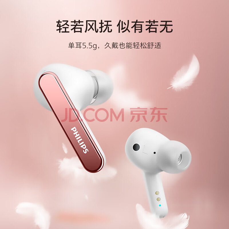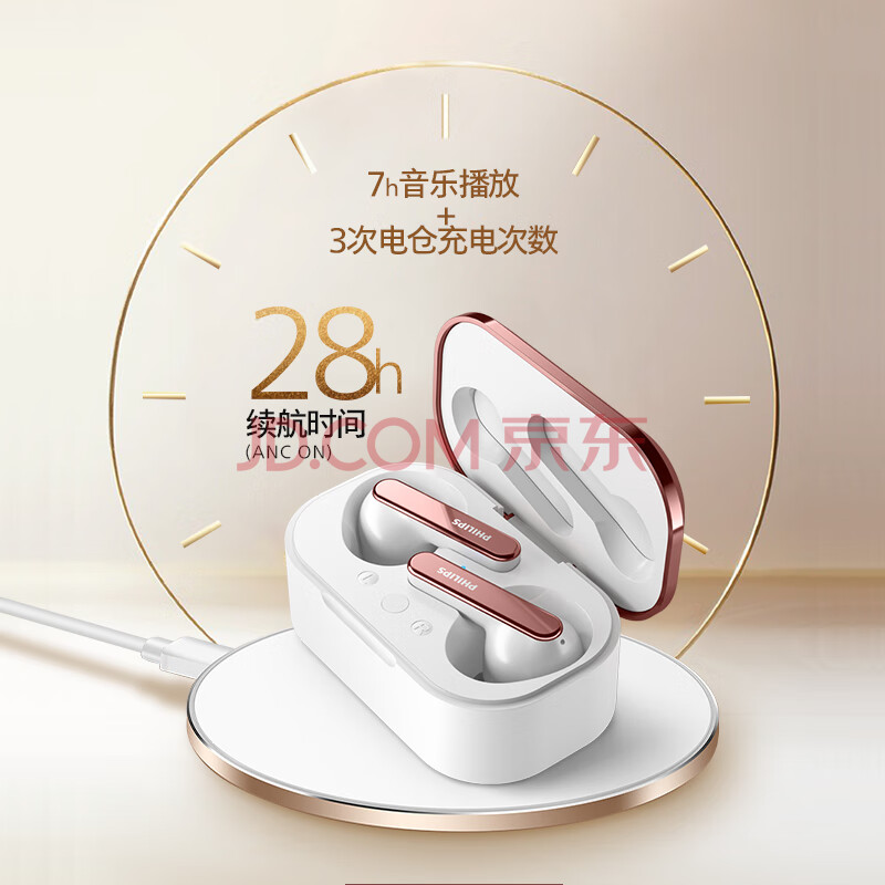 商品相册:飞利浦(PHILIPS)真无线降噪蓝牙耳机T5506 蓝牙5.2 主动降噪ACC高品质音频无线运动耳机 28h超长续航 白第