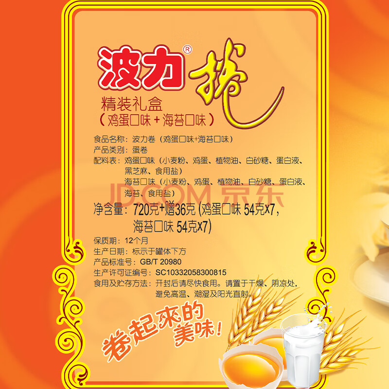 商品相册:波力鸡蛋海苔味蛋卷756g(54g*14)饼干糕点休闲零食节日精装礼盒第