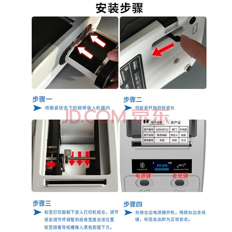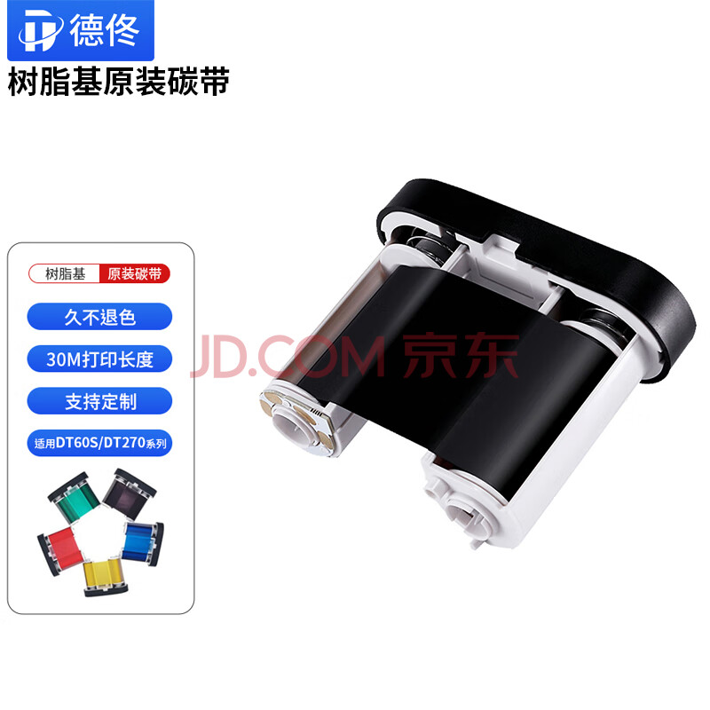 商品相册:德佟DT系列热转印固定资标签机碳带通信线缆运营商机房网线P/T型手持便携式打印机 黑色端盖-黑色碳带第