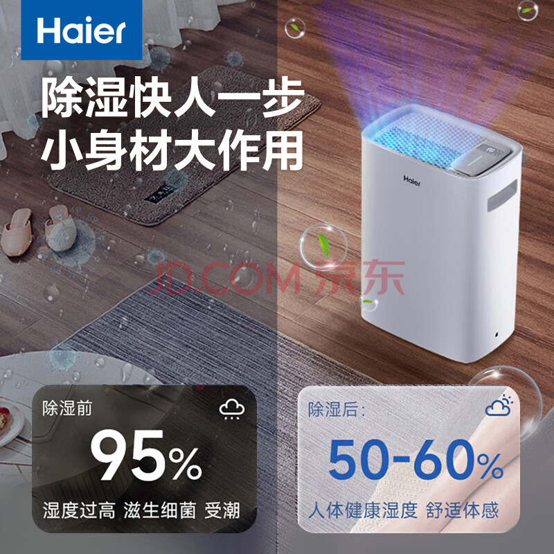 商品相册:海尔(Haier)除湿机/抽湿机京东小家智能生态除湿量20升/天20-40㎡家用除湿机轻音干衣回南天app智控 CF20-PK1第