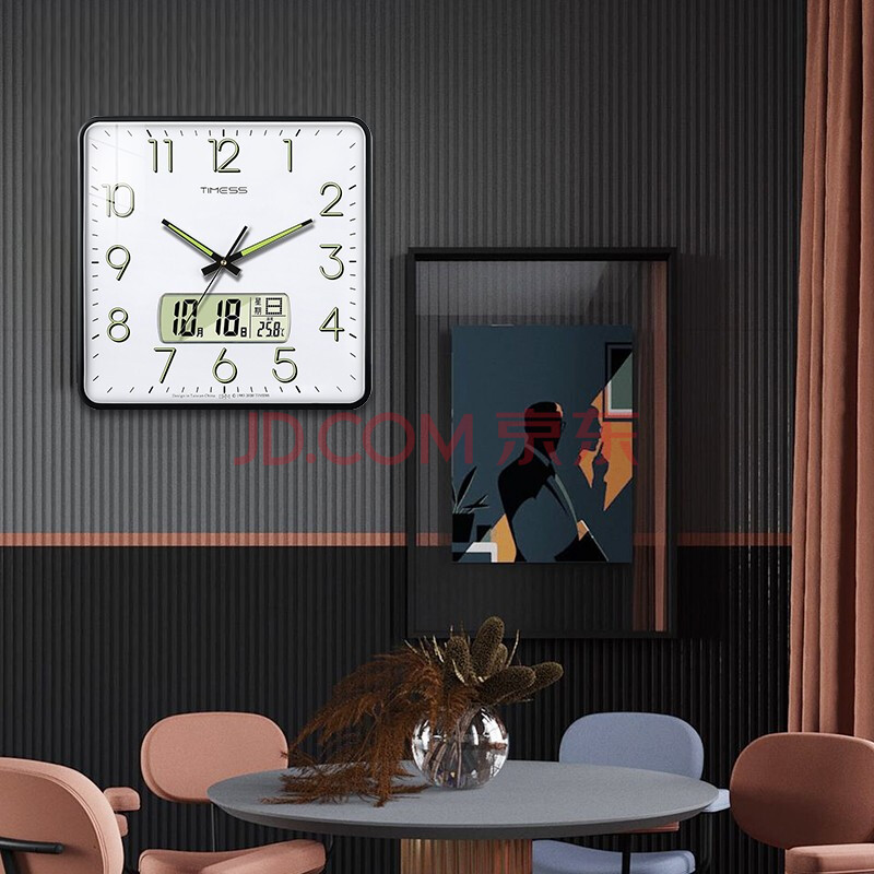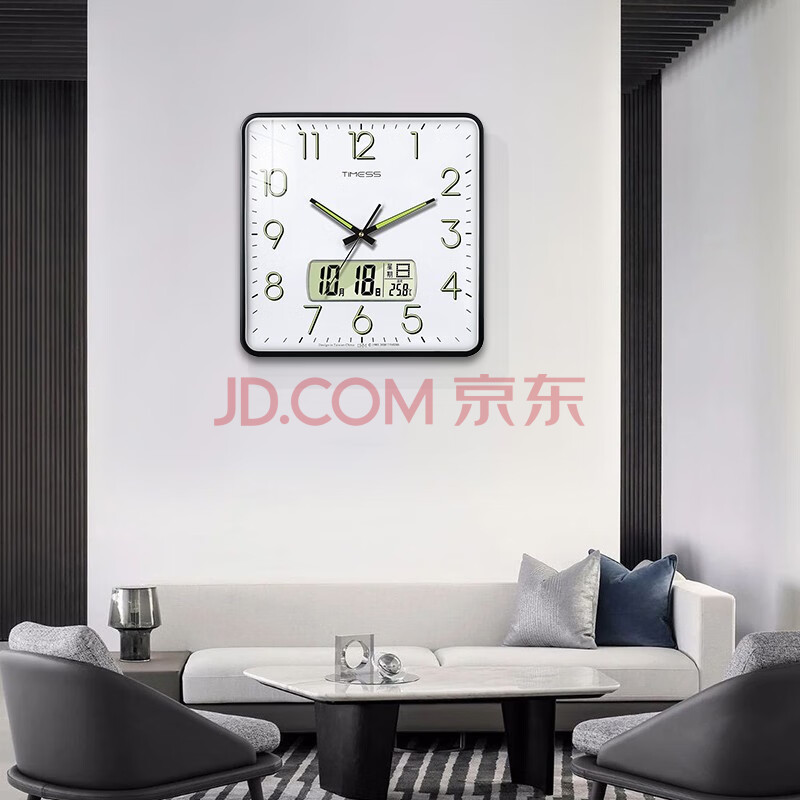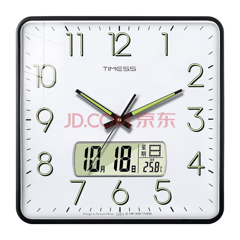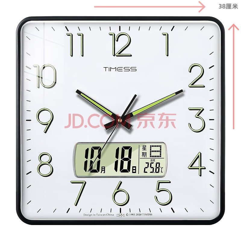 商品相册:Timess方形挂钟客厅钟表万年历时钟石英钟日历挂表钟夜光款38cm第