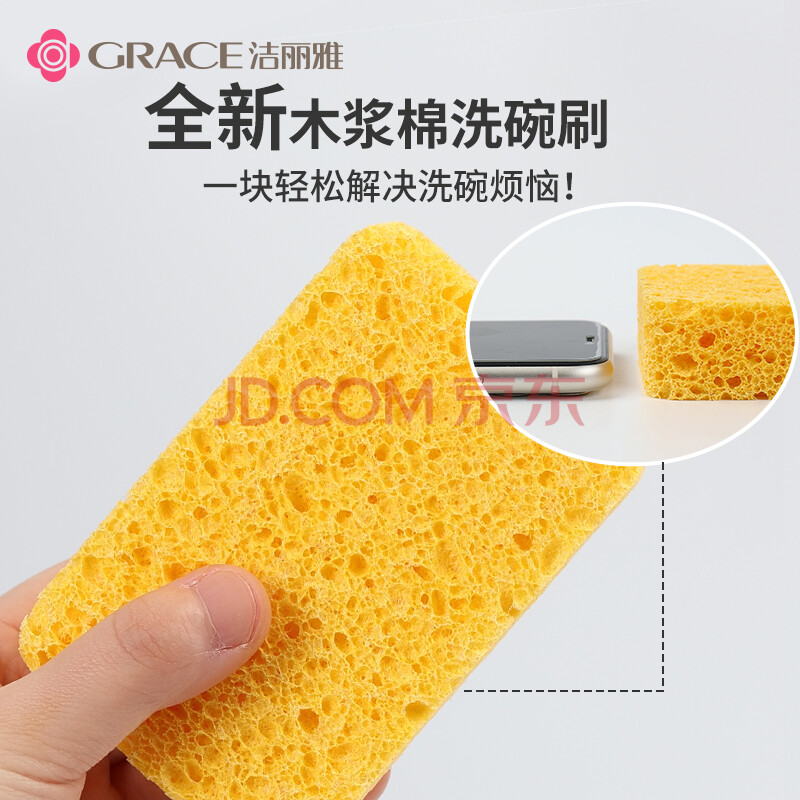 商品相册:洁丽雅木浆棉11*7*2.5cm*4片装厨房抹布百洁布洗碗海绵擦去油污第