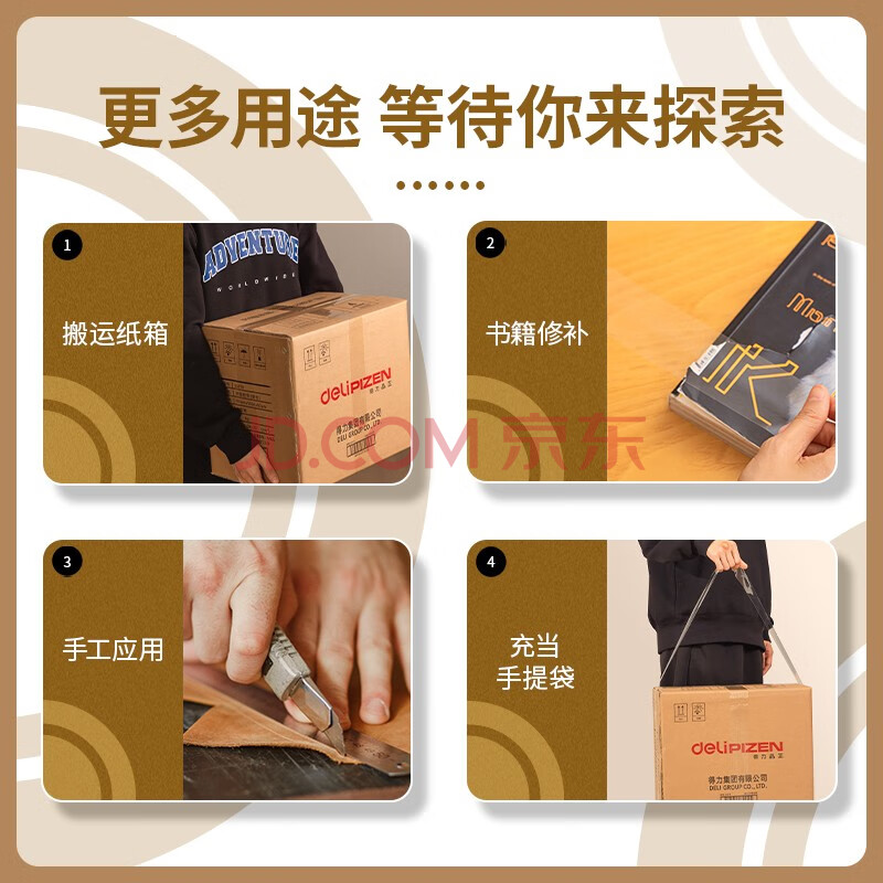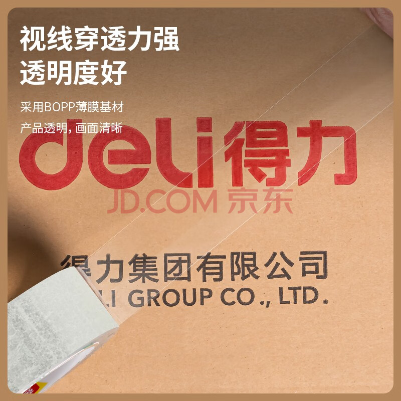 商品相册:得力(deli)高品质透明封箱胶带/打包胶带 55mm*200y(183m/卷) 6卷/筒 办公用品第