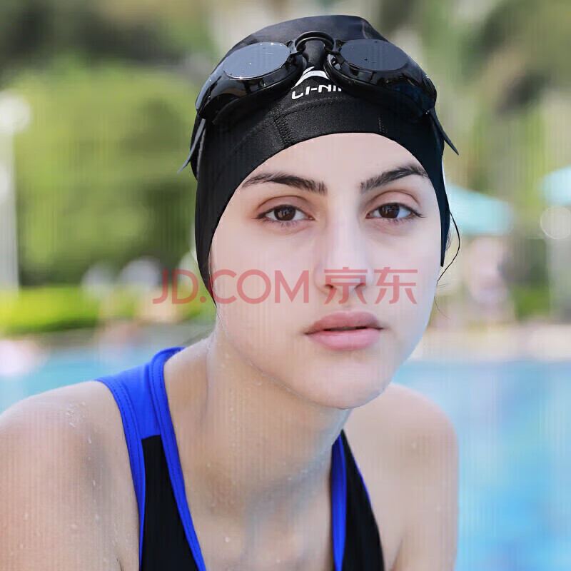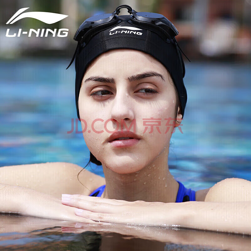 商品相册:李宁(LI-NING)泳帽男女长发舒适布游泳帽时尚护耳不勒头不粘发泳帽 LSMP151黑色第1张/共5