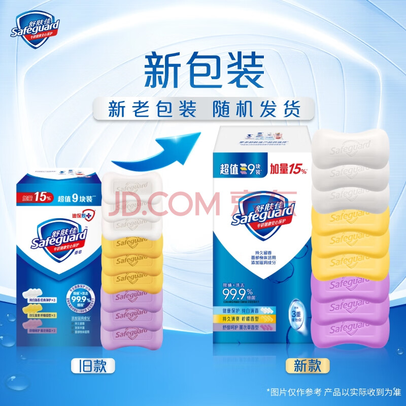 商品相册:舒肤佳香皂115g*9块皂(纯白*3+柠檬*3+薰衣草*3) 99.9%除菌新旧包装随机第
