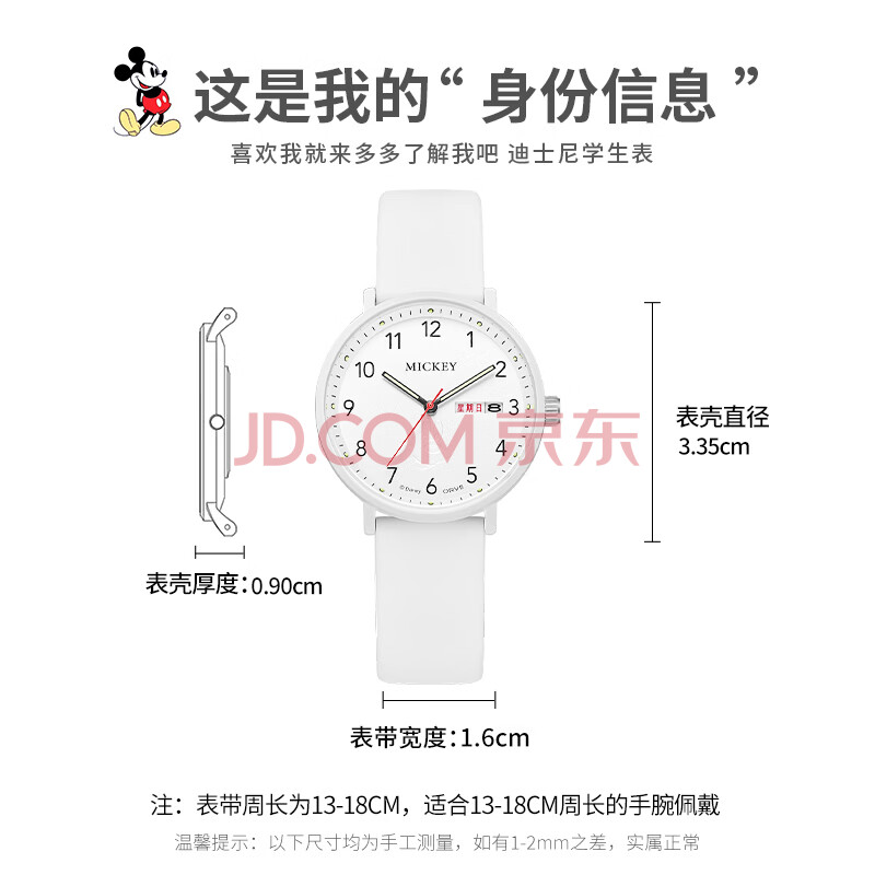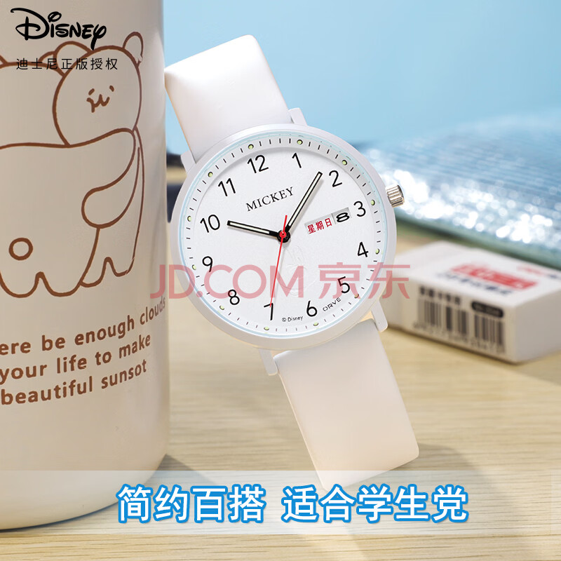 商品相册:迪士尼(Disney)学生手表简约防水石英表双日历初中生高中生考试手表MK-11809W第