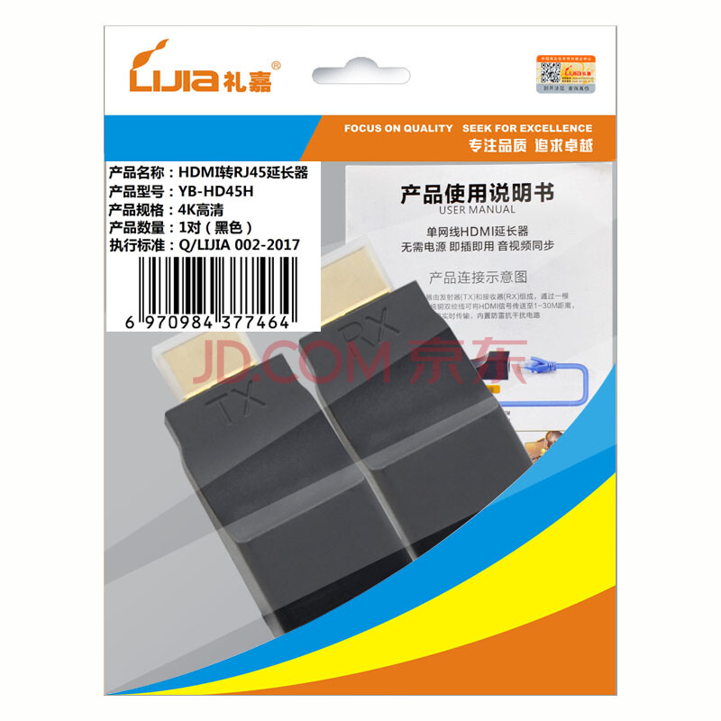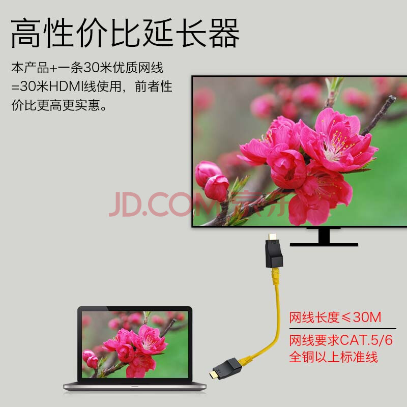 商品相册:礼嘉YB-HD45H 高清HDMI转RJ45网线延长器 网络信号放大器 双绞线单网线转接头 HDCP协议转换器30米 4K 黑色第
