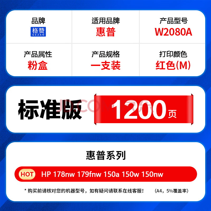 商品相册:格赞 W2080A硒鼓红色118A 适用惠普HP 178nw硒鼓 179fnw 150a 150w 150nw打印机粉盒墨盒墨粉盒 带芯片第