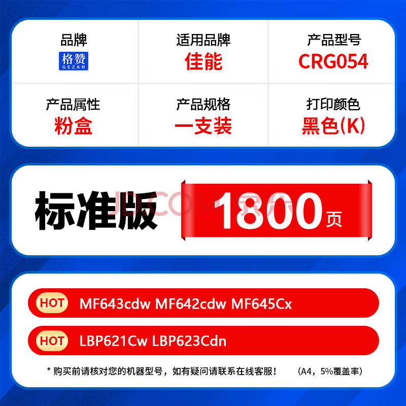 商品相册:格赞 CRG054硒鼓适用佳能mf643cdw硒鼓LBP621Cw 623cdn 623Cdw墨盒ic MF641Cw MF642cdw MF645Cx打印机粉盒黑色第