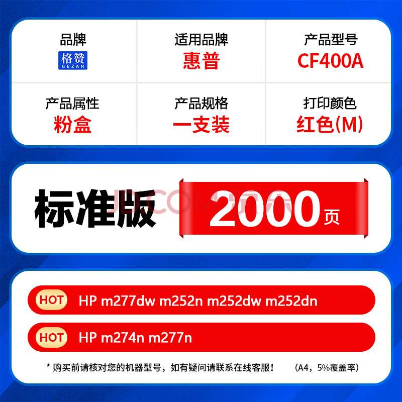 商品相册:格赞CF400A硒鼓红色201A适用惠普m277dw硒鼓m252n m252dw m252dn m274n m277n墨盒佳能CRG045 mf633cdw粉盒第