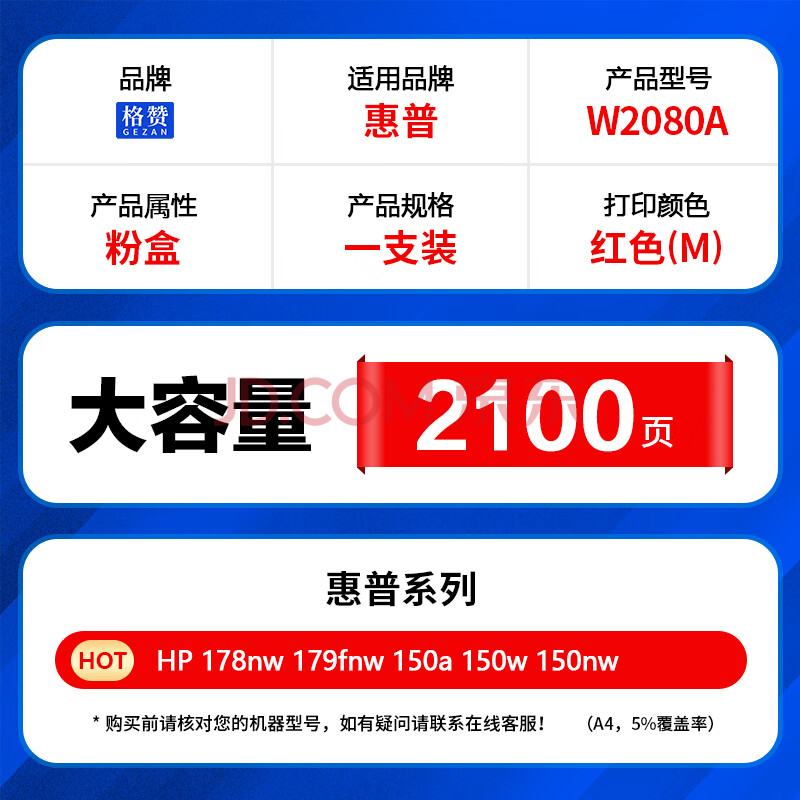 商品相册:格赞 W2080A硒鼓红色118A 适用惠普HP 178nw硒鼓 179fnw 150a 150w 150nw打印机粉盒墨盒墨粉盒 大容量带芯片第