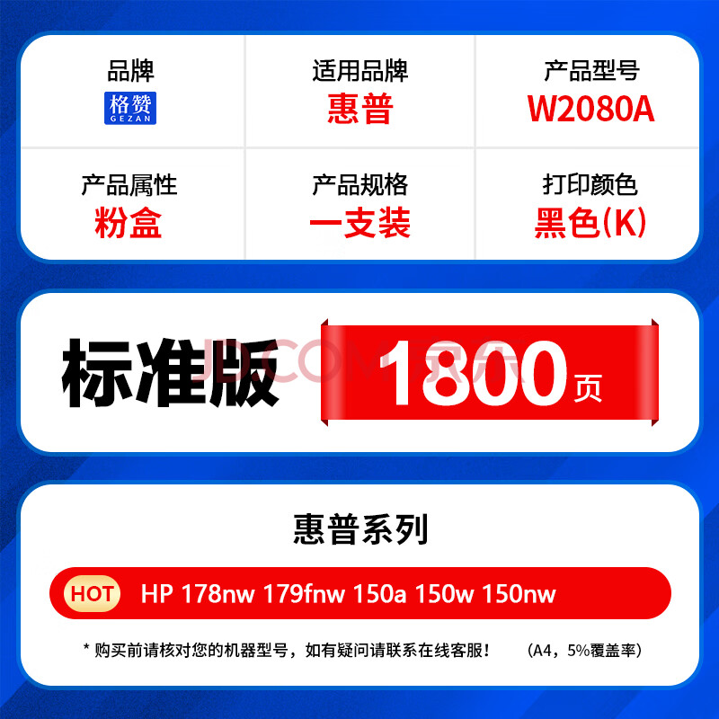 商品相册:格赞 W2080A硒鼓黑色118A 适用惠普HP 178nw硒鼓 179fnw 150a 150w 150nw打印机粉盒墨盒墨粉盒 带芯片第