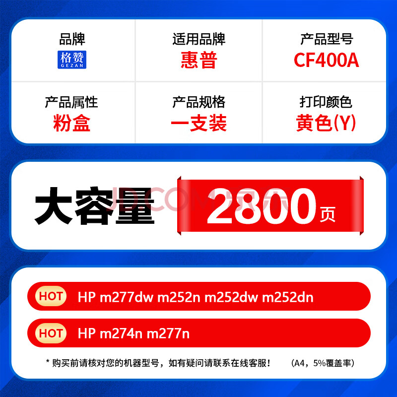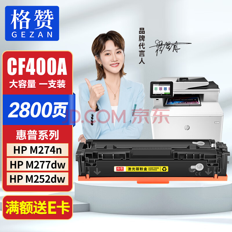 商品相册:格赞CF400A硒鼓黄色201A适用惠普m277dw硒鼓m252n m252dw/dn m274n m277n墨盒佳能CRG045 mf633cdw粉盒大容量第