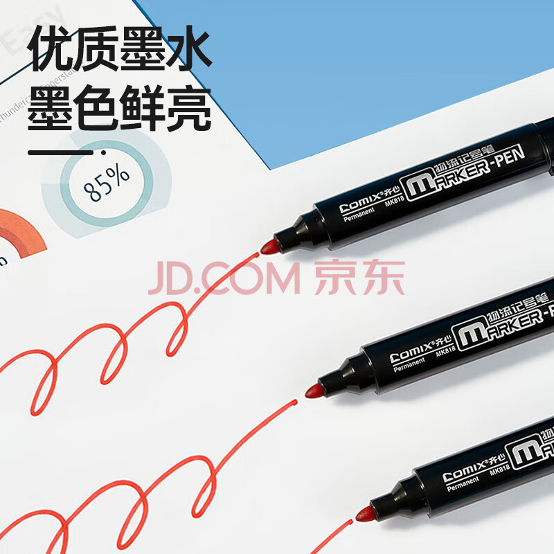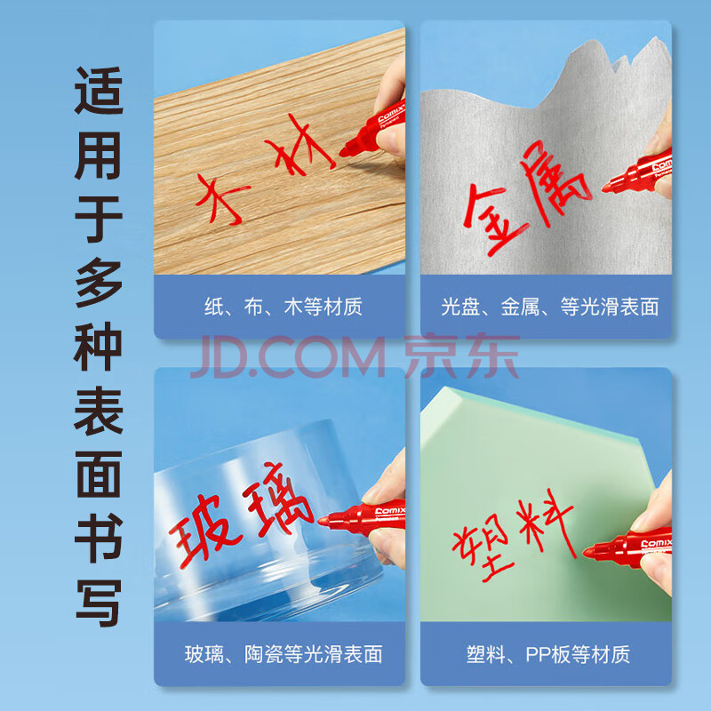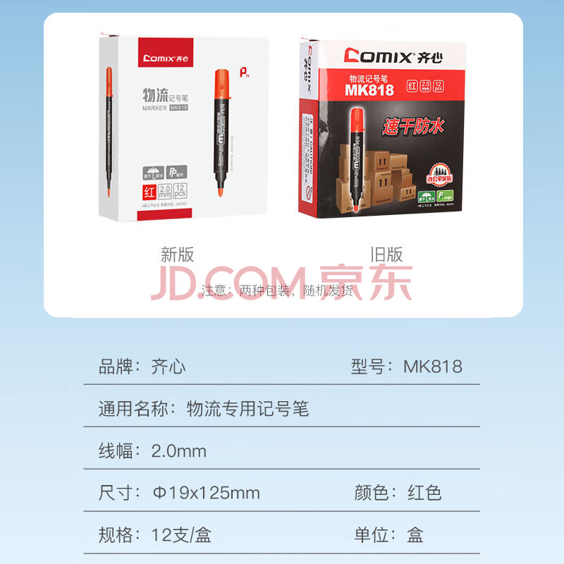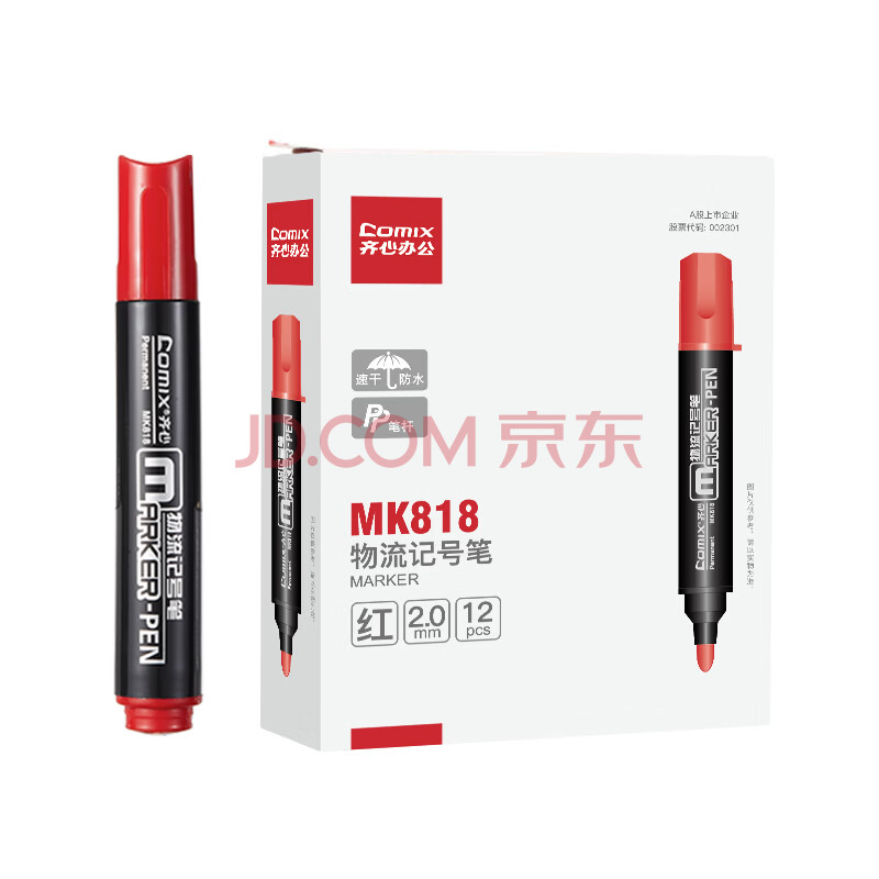 商品相册:齐心(Comix) 红色粗头物流油性记号笔大头笔 12支/盒 办公文具 MK818第