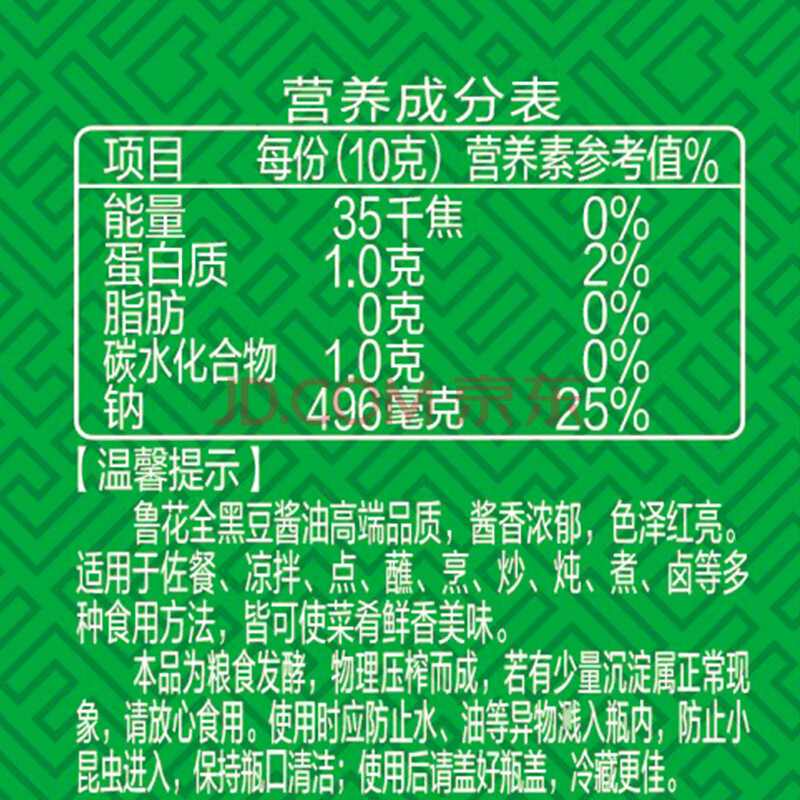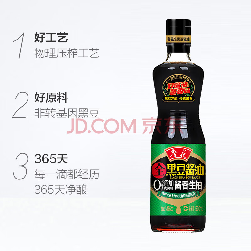 商品相册:鲁花全黑豆系列 生抽酱油【0添加防腐剂 特级生抽】500ml 厨房调味品第