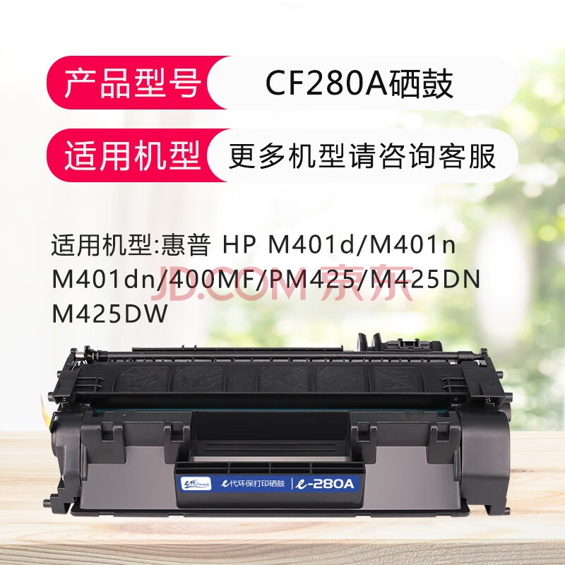 商品相册:e代 CF280A硒鼓(鼓粉一体)黑色单支装(适用惠普400/M401d/M401n/M401dn/400MF/PM425/M425DN)打印页数:2700第