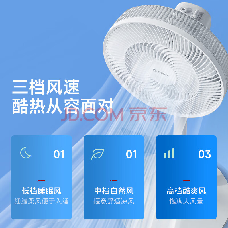 商品相册:格力(GREE)电风扇落地扇7叶台地两用家用风扇卧室客厅电扇宿舍学生立式摇头扇轻音低噪白色机械款 FD-3515h7第