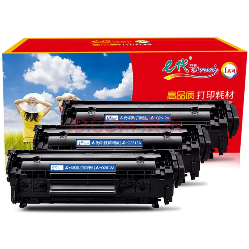 商品相册:e代Q2612A硒鼓3支装 适用惠普hp打印机12a硒鼓2612墨盒m1005 1020plus碳粉1010佳能LBP2900 11121e复印机墨粉第