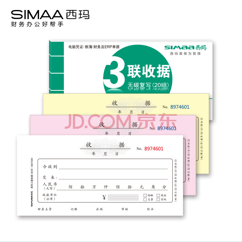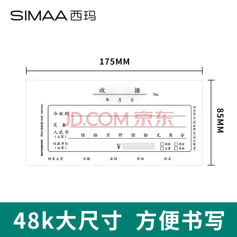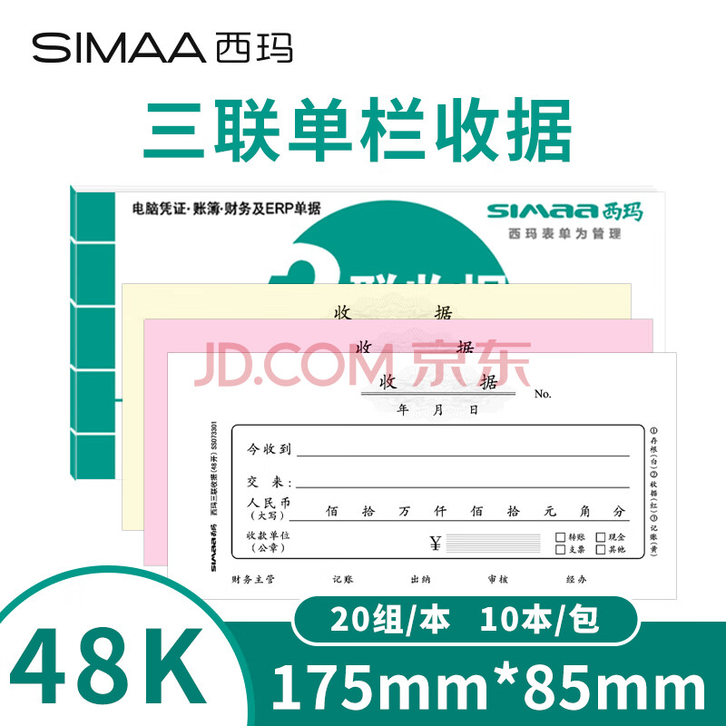 商品相册:西玛(SIMAA)三联单栏收据财务加厚手写收据单收款办公用品175*85mm无碳复写 20组/本 10本装第