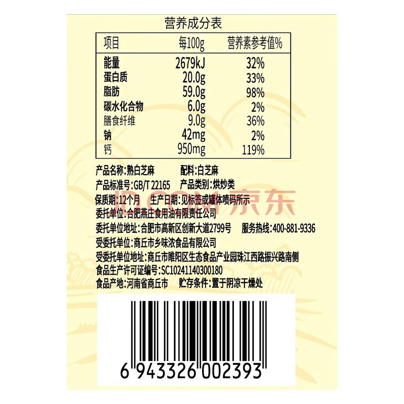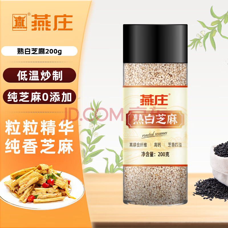 商品相册:燕庄 熟白芝麻200g【低温炒制】杂粮 烘焙拌凉菜即食 调味香辛料第