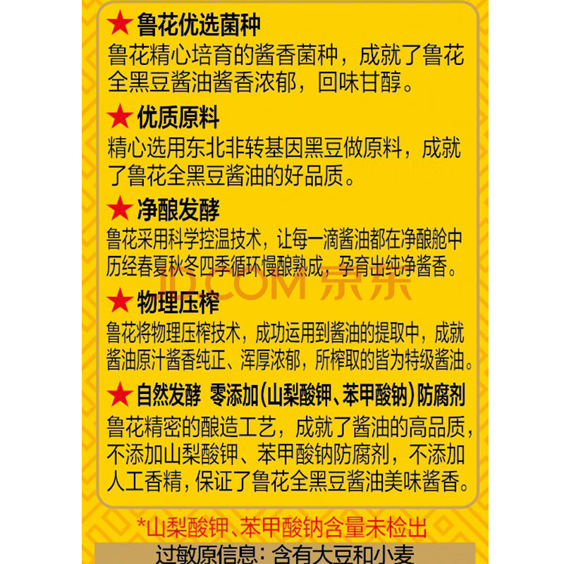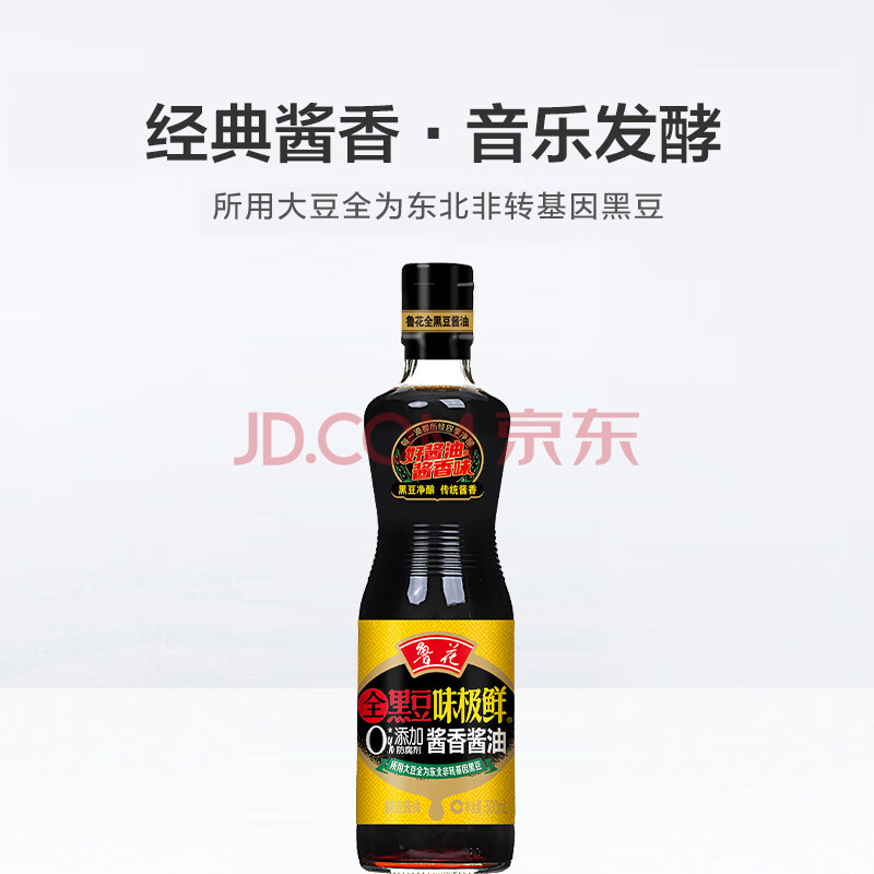 商品相册:鲁花全黑豆味极鲜系列 酱香酱油【0添加防腐剂 特级生抽】500ml调味品第